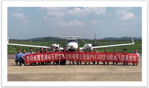 2020年8月5日16時(shí)18分,由公司投資的蕪湖鉆石航空發(fā)動(dòng)機(jī)有限公司生產(chǎn)的AE300發(fā)動(dòng)機(jī)搭載中電科鉆石雙發(fā)四座飛機(jī)平穩(wěn)著陸,標(biāo)志著國產(chǎn)AE300發(fā)動(dòng)機(jī)試飛驗(yàn)證工作圓滿成功。